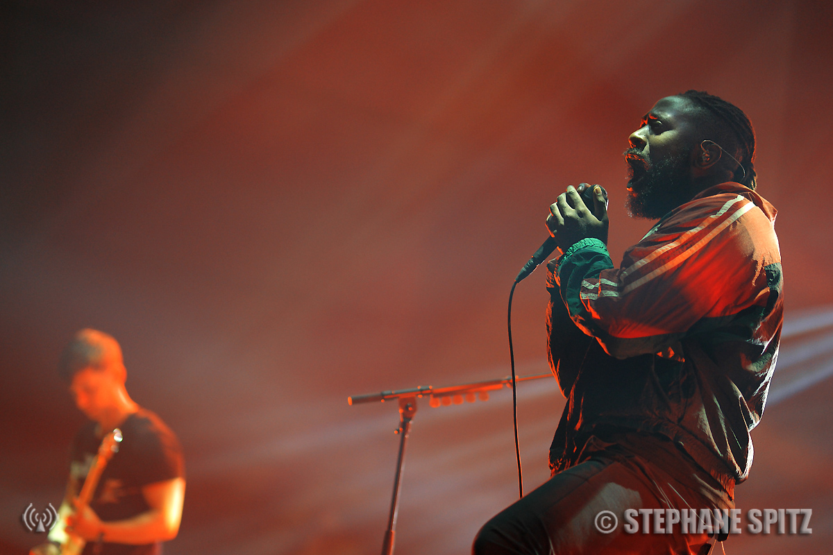 Le besoin de rock se fait sentir, heureusement Bloc Party débute à minuit. Le Dôme affiche maintenant complet pour accueillir la formation britannique. Et rapidement, force est de constater qu’en live, la présence de Kele fait qu’on s’en tape un peu des morceaux. Le leader du groupe a la classe – même en survêt – et sait capter l’audience sans aucun relâchement. Et quand survient par surprise leur premier hit ‘Banquet‘, c’est forcément l’hystérie dans les premiers rangs, d’autant que le titre n’a pas pris une ride. Au passage, Kele évoque le Brexit qui vient juste d’être voté : pour lui, la démocratie anglaise est devenue ‘démocrazy’.