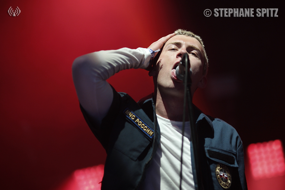 Beaucoup moins punk, la grande scène Bagatelle accueille la nouvelle idole des jeunes de la chanson française. Eddy de Pretto plugge d’entrée son fidèle iphone et déroule ses hits comme ‘Jimmy‘, ‘Normal‘, ‘Kid‘, ‘Fête de Trop‘… Seulement accompagné d’un bien discret batteur, son flow fait mouche parmi la colossale assistance qui reprend à tue-tête de nombreux refrains. On n’arrive pas à entrer complètement dans son univers, mais le mec a quand-même quelque chose d’un peu magnétique.